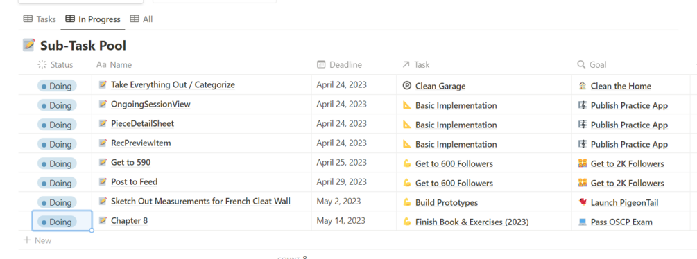 This has been invaluable in giving me a sense of control over all the things I feel like I have to do, and allow me the flexibility to choose which task to work on depending on how much I'm able to do each day. I've also started working on an app that does just this, but with infinite sub-task levels! Look out for it in the near future in the iOS app store!